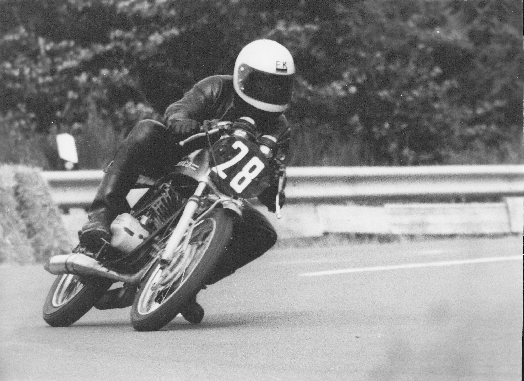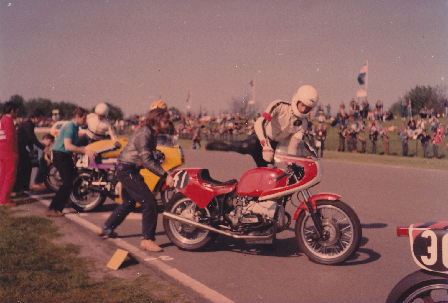 Alles fing an, als ich nach meinem Wehrdienst eine neue Stelle antrat. In dieser Firma hatte ich einen Kollegen, der sich in der 50er Jupo-Klasse recht engagiert, aber weitgehend erfolglos abmühte. Ich begleitete ihn eine Saison mit meiner R 75/5 zu Berg- und Rundstreckenrennen und war vom Rennbetrieb angetan. Als Schrauber hatte er natürlich jede Menge Teile und so stellte er eine zweite 50er auf die Räder, mit der ich mal in Zolder/Belgien ein paar Runden drehte.